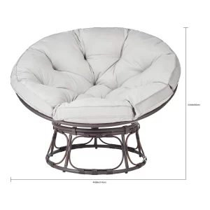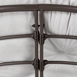 Add a touch of comfort to your home with the Better Homes & Gardens Papasan gray modern chair with a cushion. Designed with a sturdy steel frame and faux wicker accents, this classic chair features a soft 4.5″ thick tufted seat cushion covered in rich velvet-look upholstery to create an inviting seating option for one adult. The Better Homes & Gardens Papasan chair with cushion has a chair bowl that securely attaches to the base for comfort and stability. This Papasan chair’s cushion cover is made from 100% polyester that is hand-wash only with non-chlorine bleach when needed. Lay flat to dry. Cool iron if necessary. Do not dry clean.